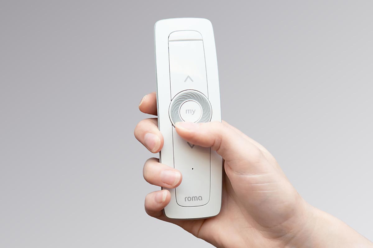 Mit der handlichen ROMA Funksteuerung haben Sie Licht und Schatten bequem im Griff. Lassen Sie morgens vom Bett aus die Raffstoren runter oder fahren Sie sie abends von der Couch aus wieder hoch.